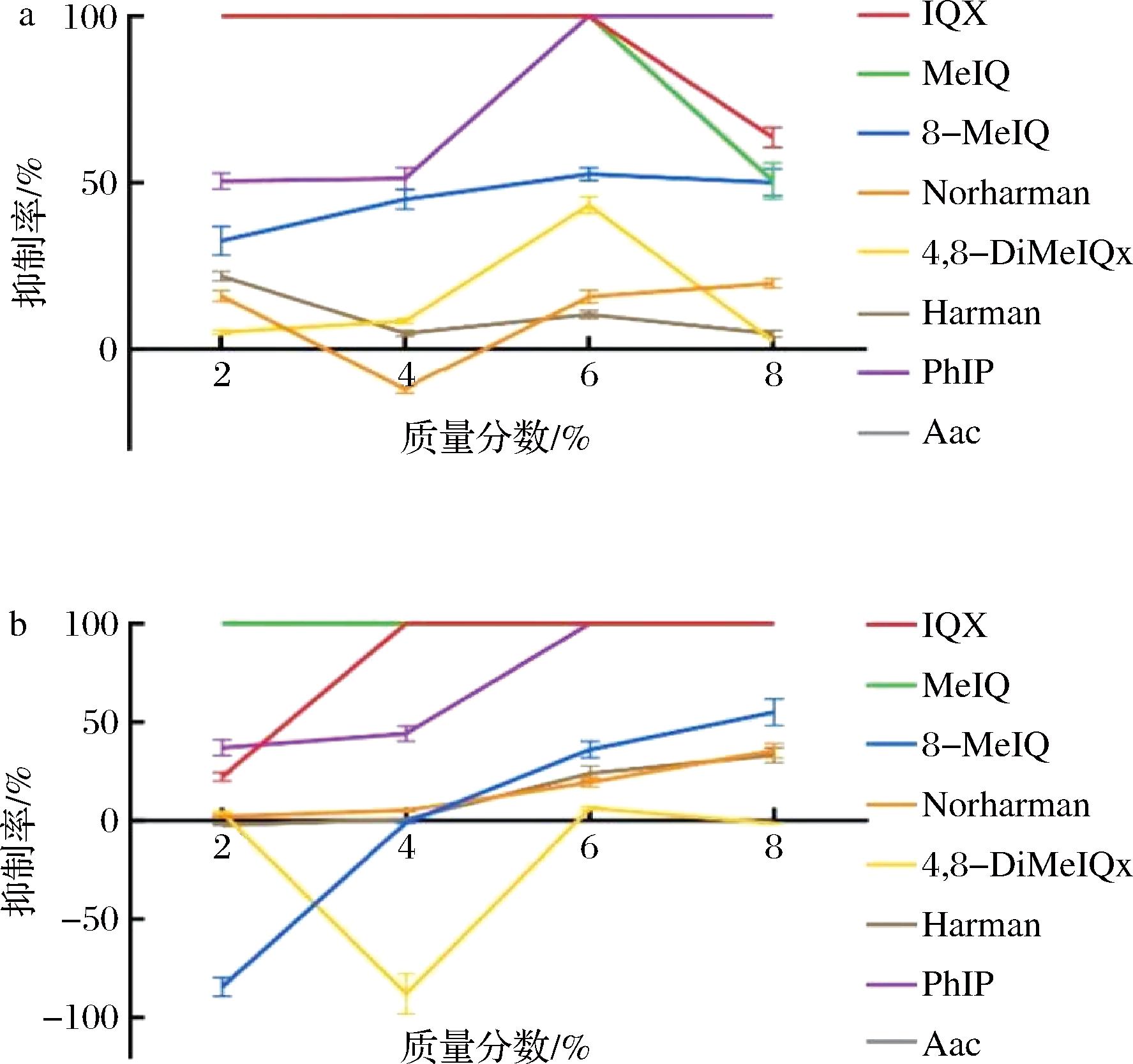 目前,已有研究验证了多酚和黄酮的代表性物质没食子酸和芦丁在苏氨酸模拟体系中对HAAs的抑制效果,富含多酚和黄酮的外源活性物质在抑制HAAs的生成方面具有良好的应用前景[3-5]。