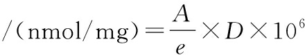 式中:A,吸光度值;e,消光系数,13 600 L/(mol·cm);D,水浴前稀释倍数。