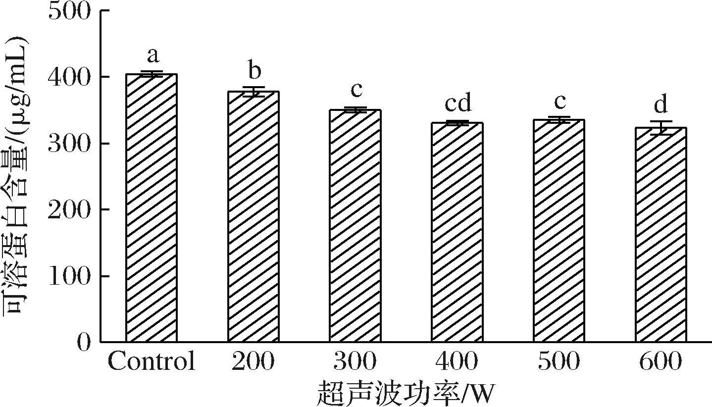 图1 不同功率下样品的可溶蛋白含量图