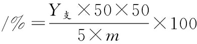 式中:W直为直链淀粉含量,%;W支为支链淀粉含量,%;Y直为直链淀粉质量浓度,mg/mL;Y支为支链淀粉质量浓度,mg/mL;m为干燥后糯玉米淀粉质量,mg。