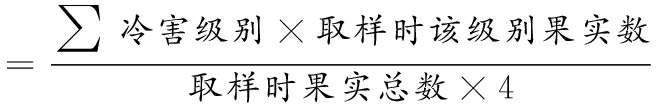 冷害发生率:每个实验组中出现冷害症状的果实数量与该组取样时总果实数的比值,用%表示。
