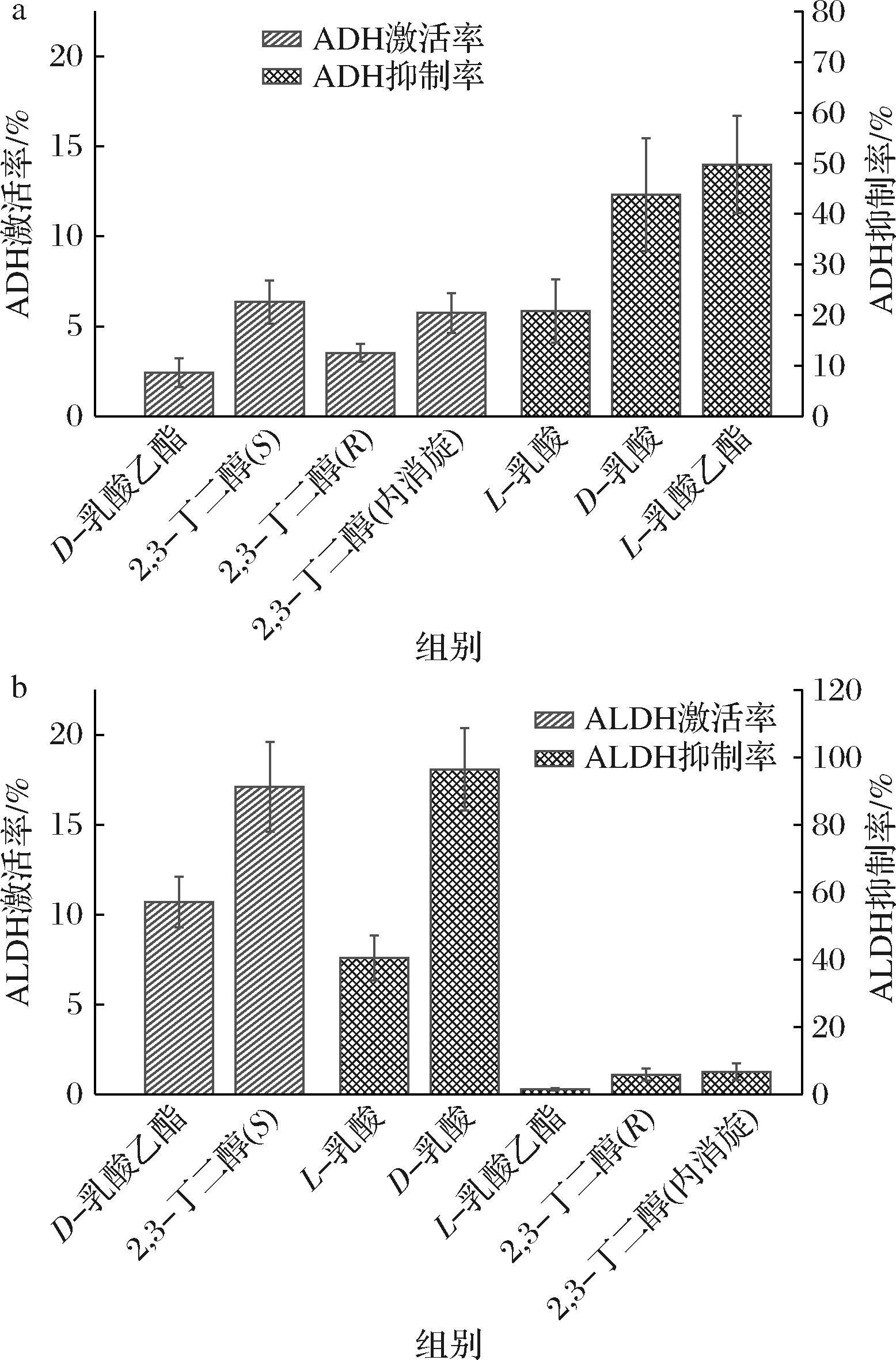图4 手性风味成分体外对ADH和ALDH活性的影响