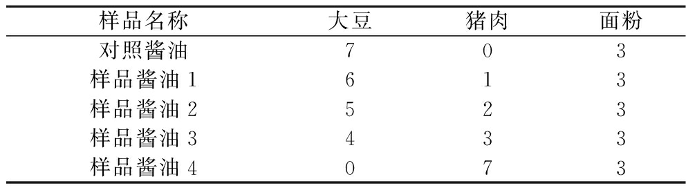 表1 样品酱油和对照酱油主要原料使用比例