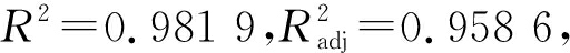 由表3可知,回归模型的F值为42.21,P值<0.000 1,模型的决定系数