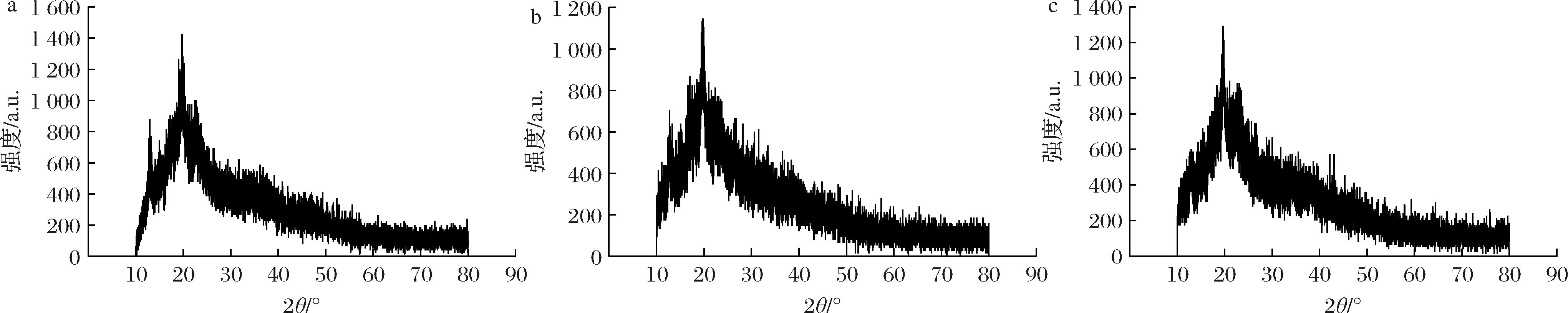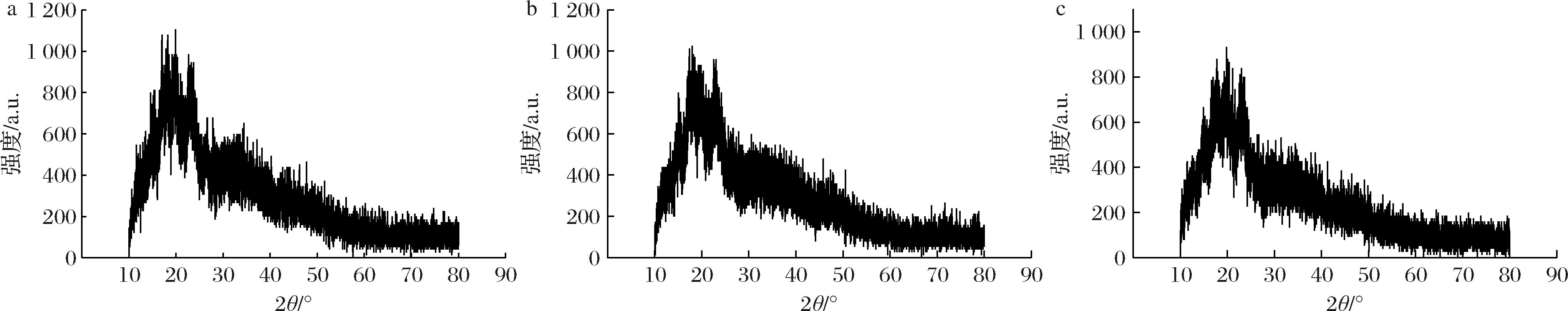图5 酒醅淀粉样品A、B、C的X-射线衍射图