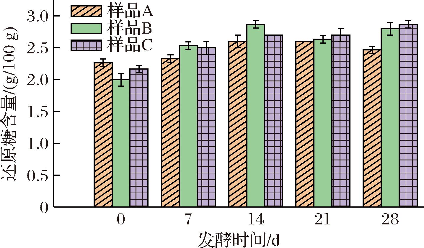 图3 末轮次酱酒发酵过程中酒醅还原糖含量变化