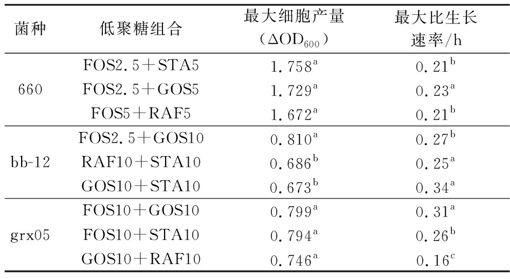 Table 2 The maximum biomass and maximum specific growth rate of strains in medium supplemented with different oligosaccharide combinations