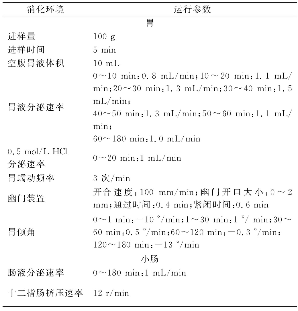表2 人体外动态胃肠连续消化模拟的运行参数