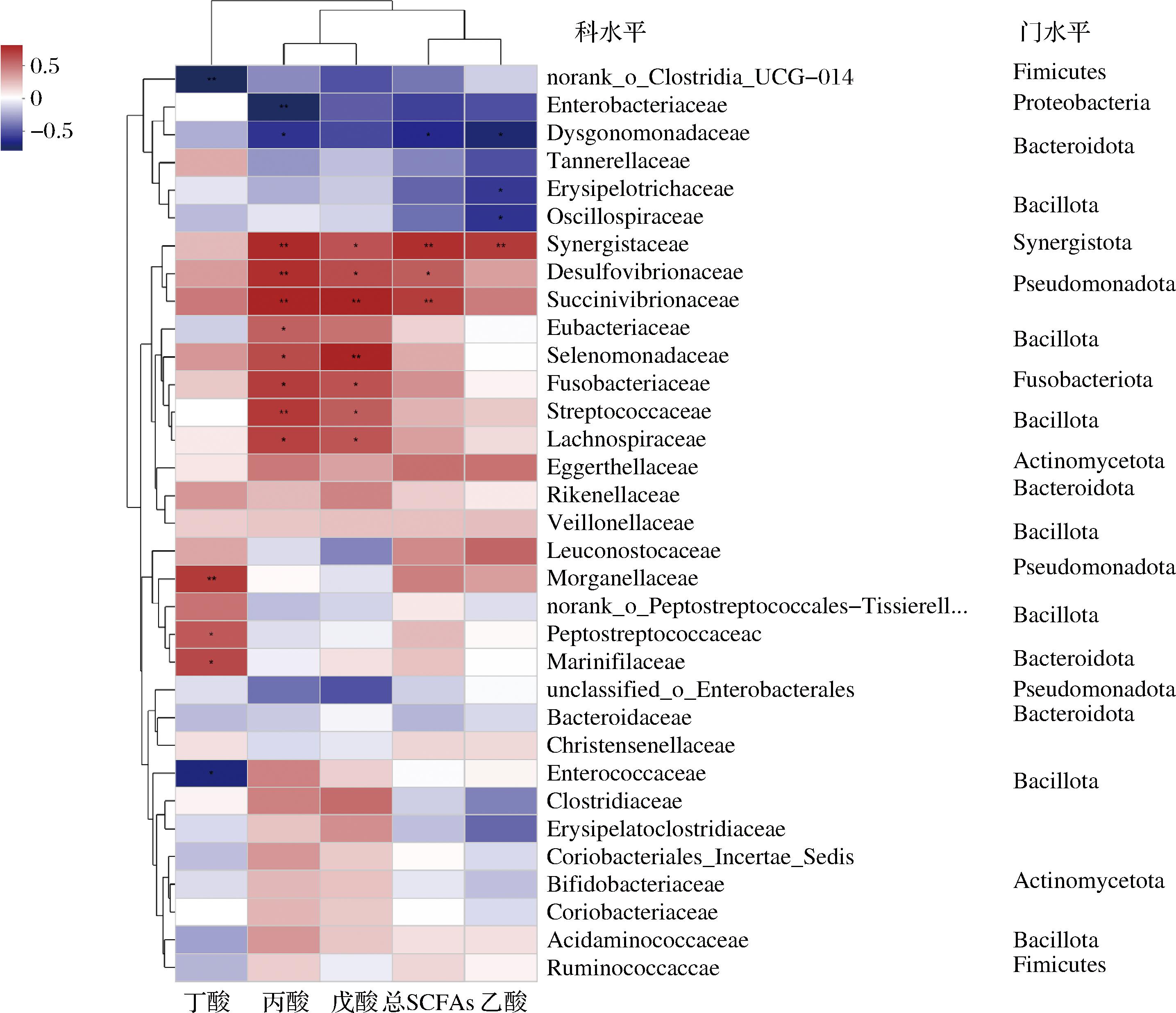 Fig.6 Correlation analysis of microbial composition and SCFAs during 48 h in vitro fermentation