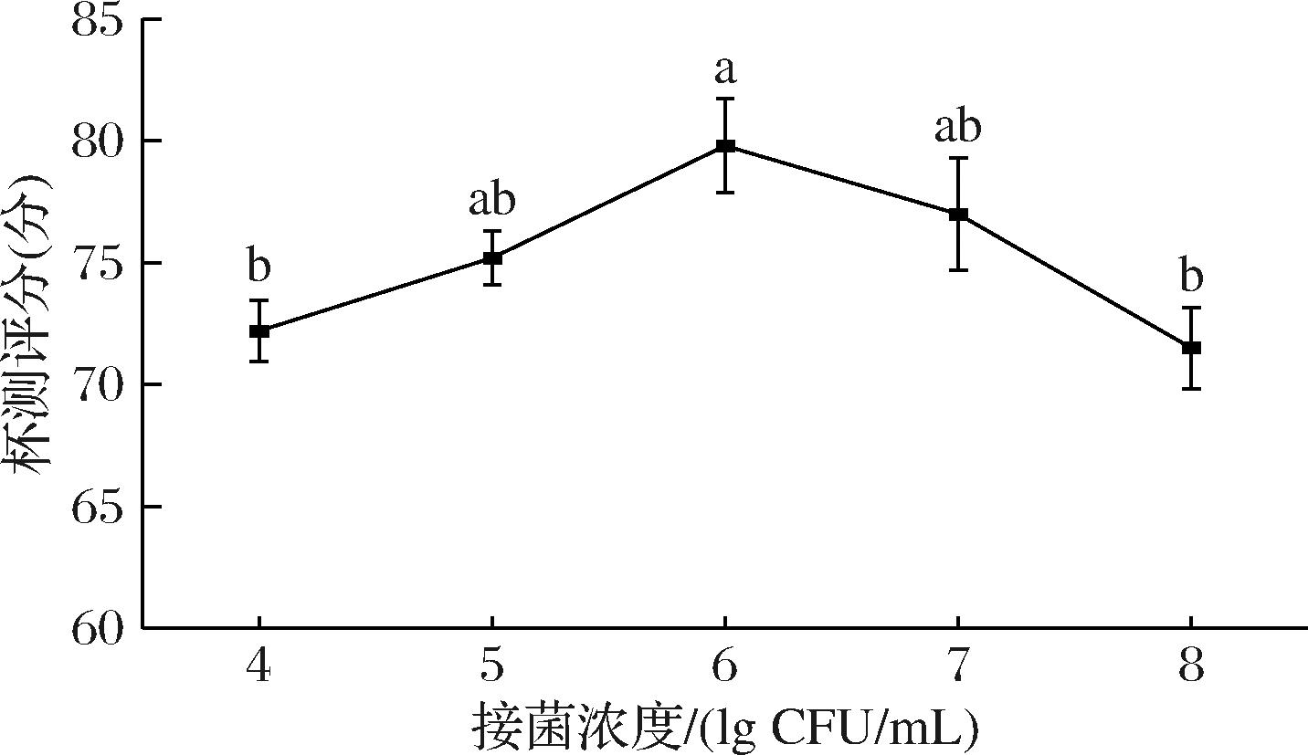 图1 接菌浓度对玫瑰风味咖啡感官评分的影响