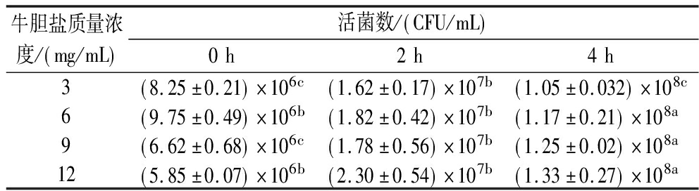 将乳酸菌在pH=3或不同胆汁盐浓度(3、6、9、12 mg/mL)的MRS培养基中分别稀释至1×108 CFU/mL,在37 ℃、180 r/min培养条件下振荡培养4 h以模拟肠道条件,在0、2和4 h取样稀释涂布,通过平板计数法来评估分离的细菌细胞对酸和胆盐的耐受性[15]。以上试验均重复3次。
