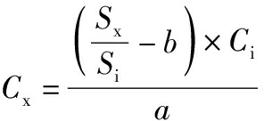 式中:Cx,异嗅化合物的质量浓度,μg/L;Ci,内标的质量浓度,μg/L;Sx,异嗅化合物的峰面积;Si,内标的峰面积;a,异嗅化合物标准曲线的斜率因子;b,异嗅化合物的标准曲线截距。