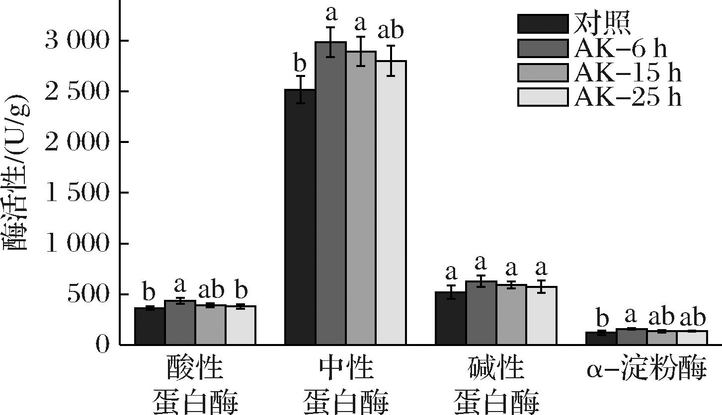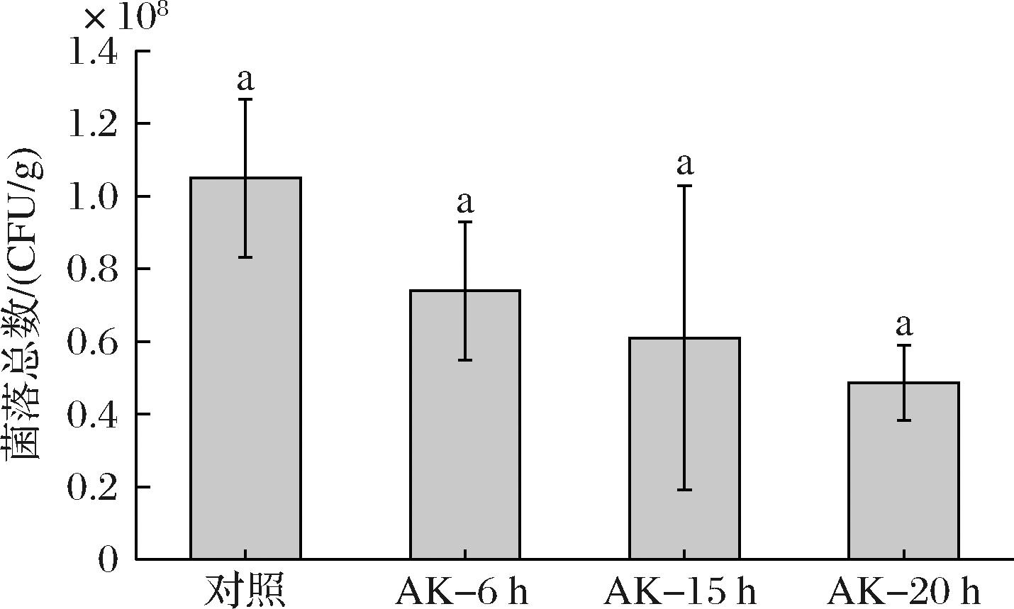 控制氨基酸态氮/ g/100mL 全氮/ g/100mL 谷氨酸/ g/L 对照1.11±0.01b1.84±0.02b9.4±0.1bAK-6h1.14±0.01a1.90±0.02a9.9±0.1aAK-15h1.13±0.01a1.86±0.01a9.7±0.1abAK-25h1.11±0.01b1.85±0.01b9.4±0.1b