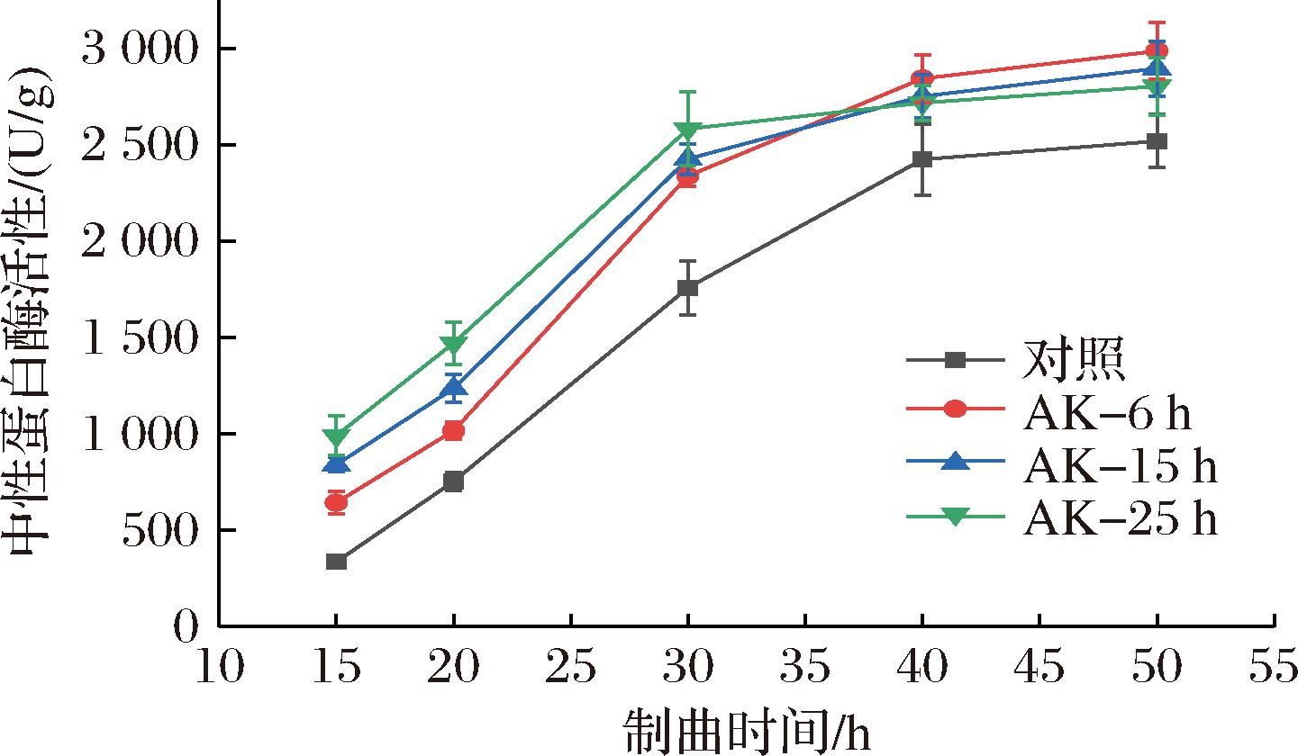 2.1.2 对制曲过程中性蛋白酶活性的影响