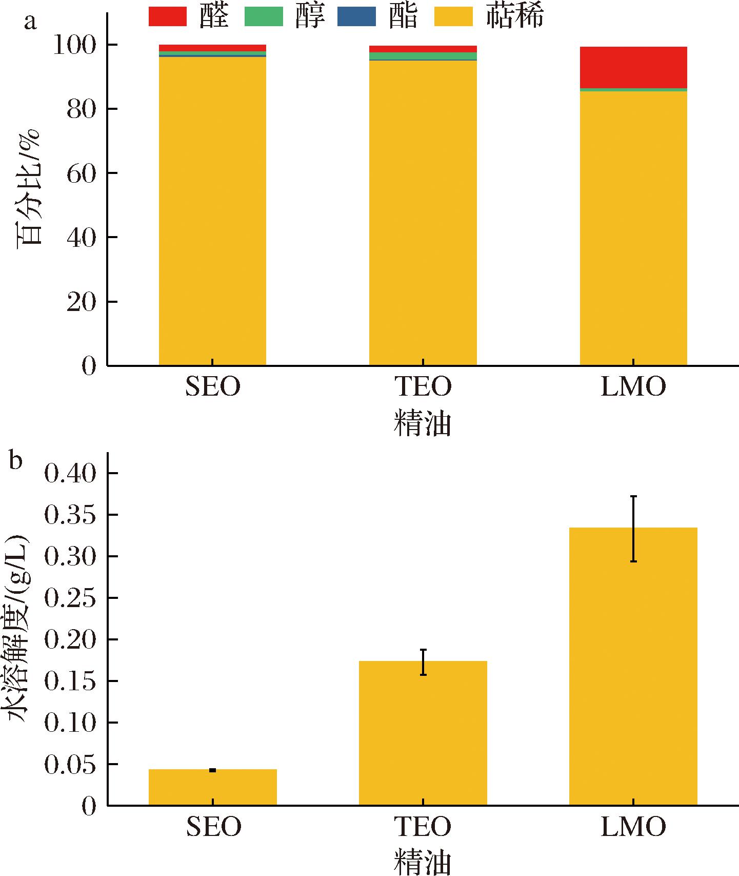 柑橘是我国产量最大的水果之一,柑橘果皮中富含的柑橘精油(citrus essential oil,CEO),具有清新的香气和抑菌特性,被美国食品药品监督管理局认为是普遍安全的[1],因此在食品、饮料及化妆品中被广泛应用[2]。柑橘精油丰富的香气90%源自疏水性香气化合物,然而这些物质难溶于水,因此柑橘精油在水溶性体系尤其是透明饮料中的应用受到了极大的限制。