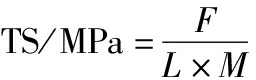 式中:TS,拉伸强度,MPa;F,断裂时承受的最大张力,N;L,膜的厚度,mm;M,膜的宽度,mm。