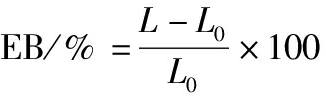 式中:EB,断裂伸长率,%;L,膜断裂时伸长的长度,mm;L0,膜的原始长度,mm。