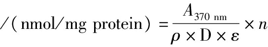 采用总巯基测定试剂盒进行检测,取1 g样品加入10 mL提取液,冰浴条件下匀浆后进行离心(8 000×g,4 ℃,10 min),取上清后置于4 ℃待测,测定方法参照说明书进行。
