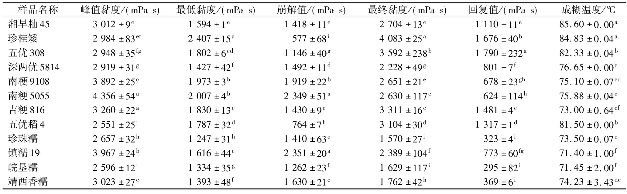 Table 3 Pasting properties of different varieties of rice starch