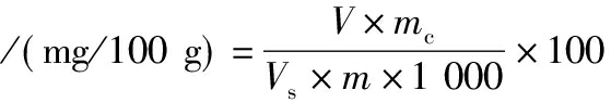 式中:mc,从标曲中求得的抗坏血酸质量,μg;Vs,测定时所用样品提取液体积,mL;V,样品提取液总体积,mL;m,样品质量,g。
