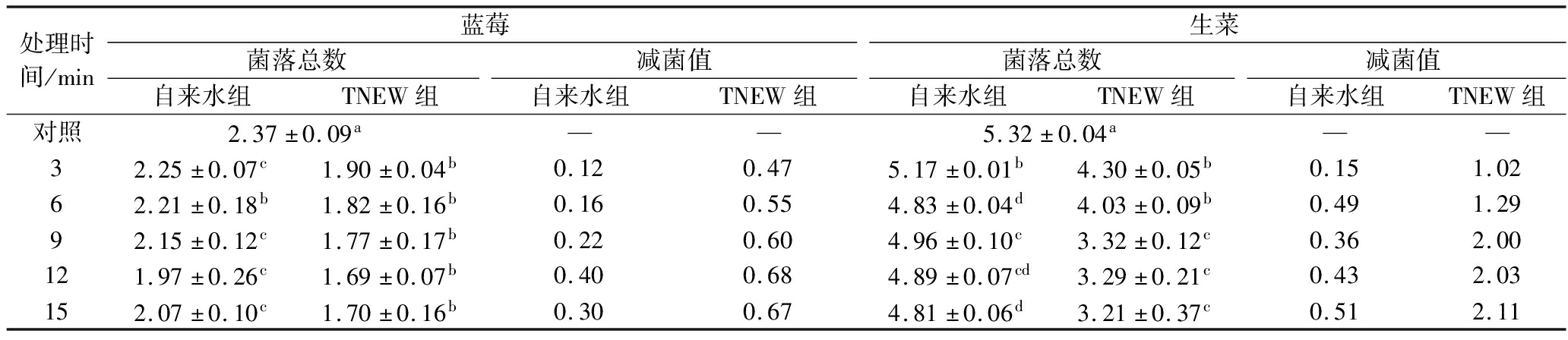 表2 TNEW处理对果蔬菌落总数的影响 单位:lg CFU/g