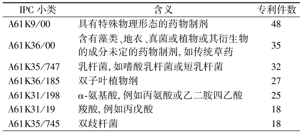 Table 3 Distribution of key IPC subclasses in dietary supplement patents