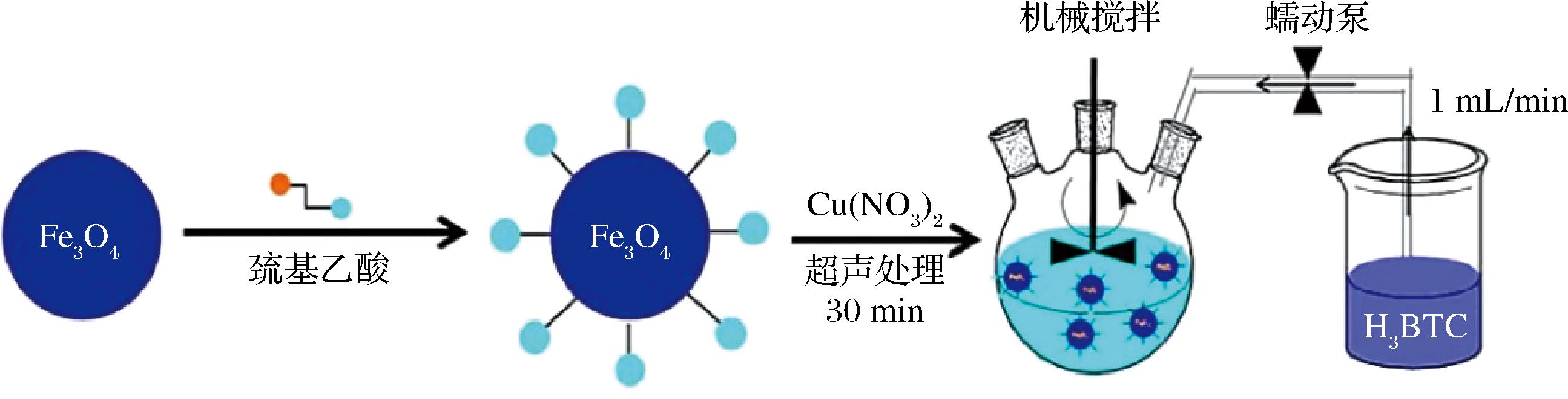 图8 Fe3O4/Cu3(BTC)2磁性材料的合成[58]