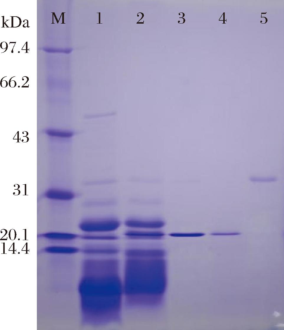 利用SDS-PAGE检测蛋白质纯度及其分子质量大小。分离胶的质量分数为14%,浓缩胶为5%。