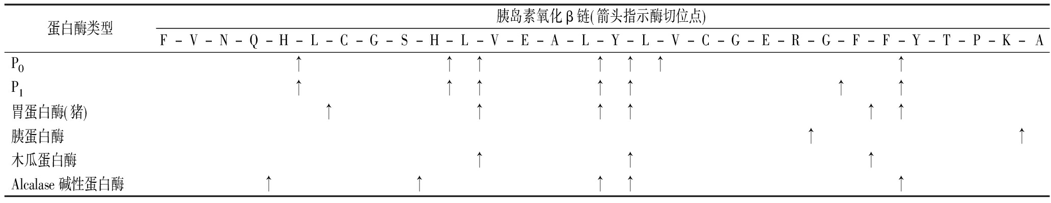 表2 不同蛋白酶在胰岛素β链上的酶切位点