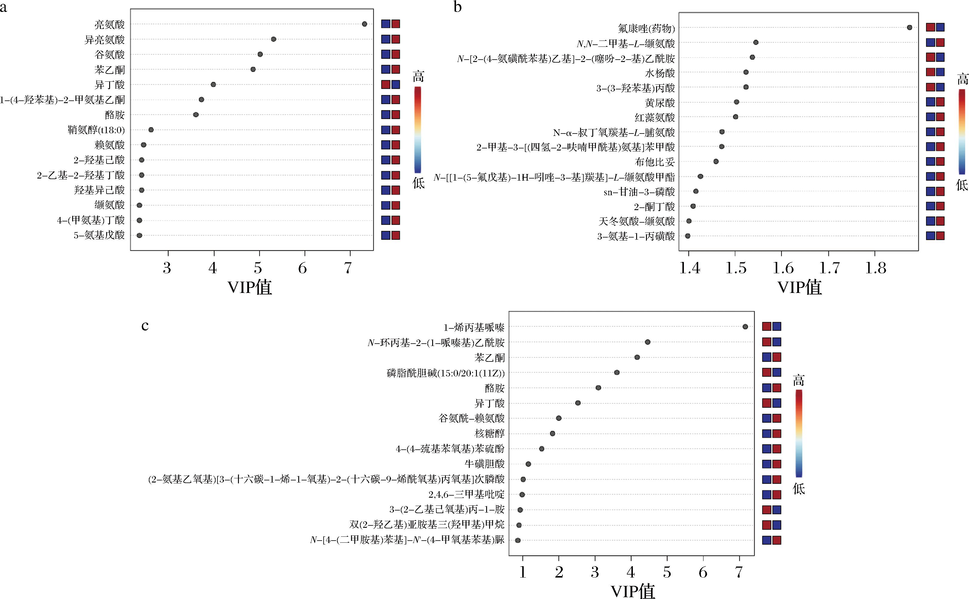 图7 小鼠阴道代谢物vs模型组VIP值分析