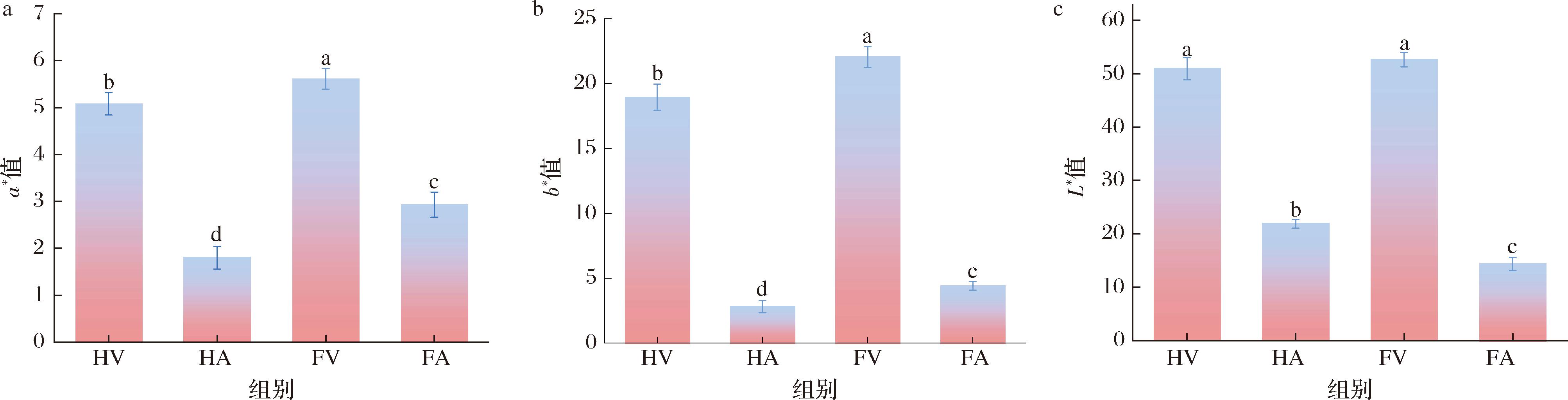 a-a*值;b-b*值;c-L*值