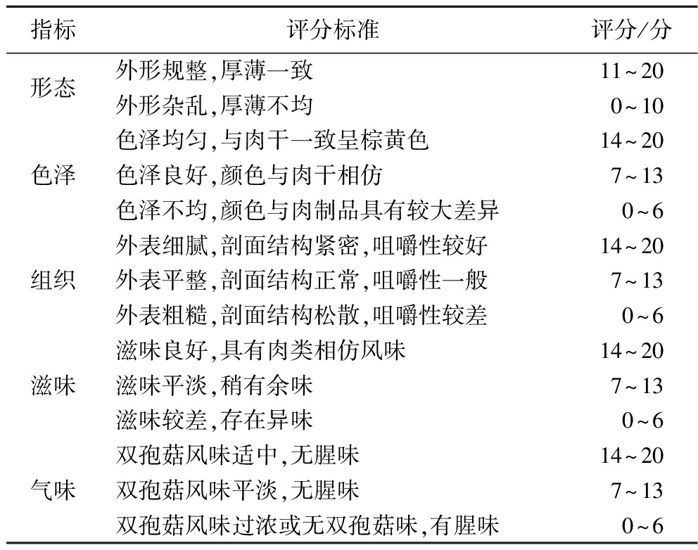 表1 不同干燥方式的双孢菇素肉干感官品评评分表