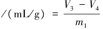 采用体积置换法测定样品的体积[18]。将30颗熟干糯米放入5 mL量筒中并倒入油菜籽,轻轻敲打10~20下,使油菜籽填满熟干糯米的空隙,记录此时的体积V1。倒出熟干糯米与油菜籽并分离,将油菜籽再次倒入量筒中轻轻敲打,记录油菜籽的体积V2。接着,将样品放入油锅中膨化得到米花,并记录其质量m1,用同样的方法记录米花与油菜籽的总体积V3,以及分离后油菜籽的体积V4。根据公式(2)和公式(3)计算样品的膨化率和比容: