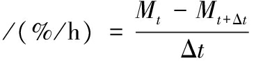 式中:Mt,t时刻糯米水分含量,%;Mt+Δt,t+Δt时刻糯米水分含量,%;Δt,糯米干燥间隔时间,h。