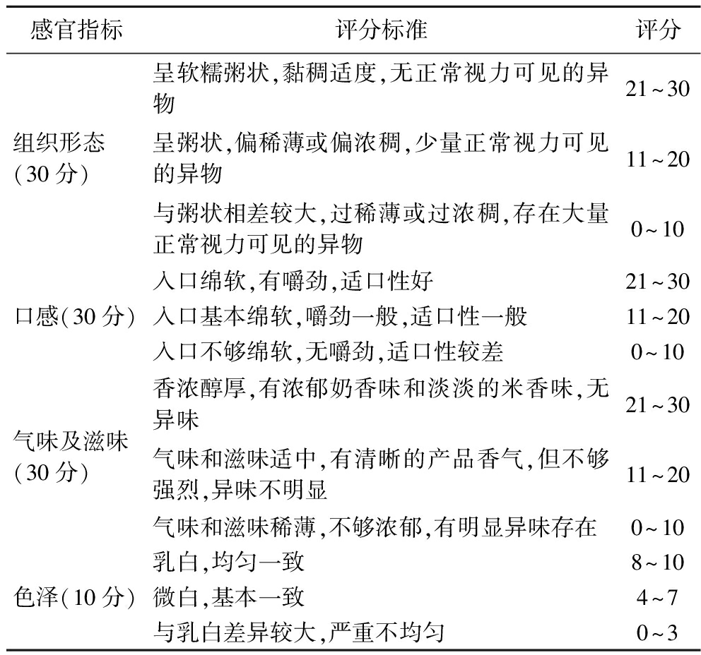 Table 1 Sensory evaluation scoring criteria of rice pudding