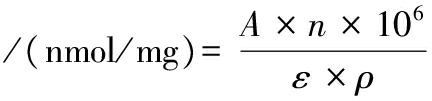 式中:A,370 nm波长处的吸光度;n,稀释倍数;ε,22 000 L/(mol·cm);ρ,肌原纤维蛋白质量浓度,mg/mL。