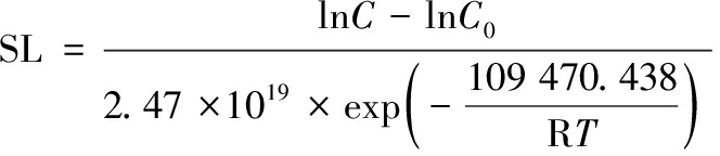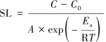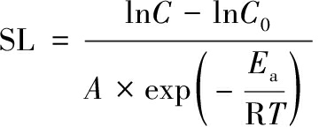 式中:A,频率因子;Ea,反应活化能;J/mol;T,温度,K;R,常数,8.314 J/(mol/K);SL:shelf life(货架期)。
