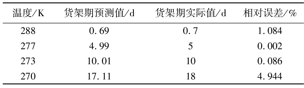 温度/K货架期预测值/d货架期实际值/d相对误差/%2880.690.71.0842774.9950.00227310.01100.08627017.11184.944