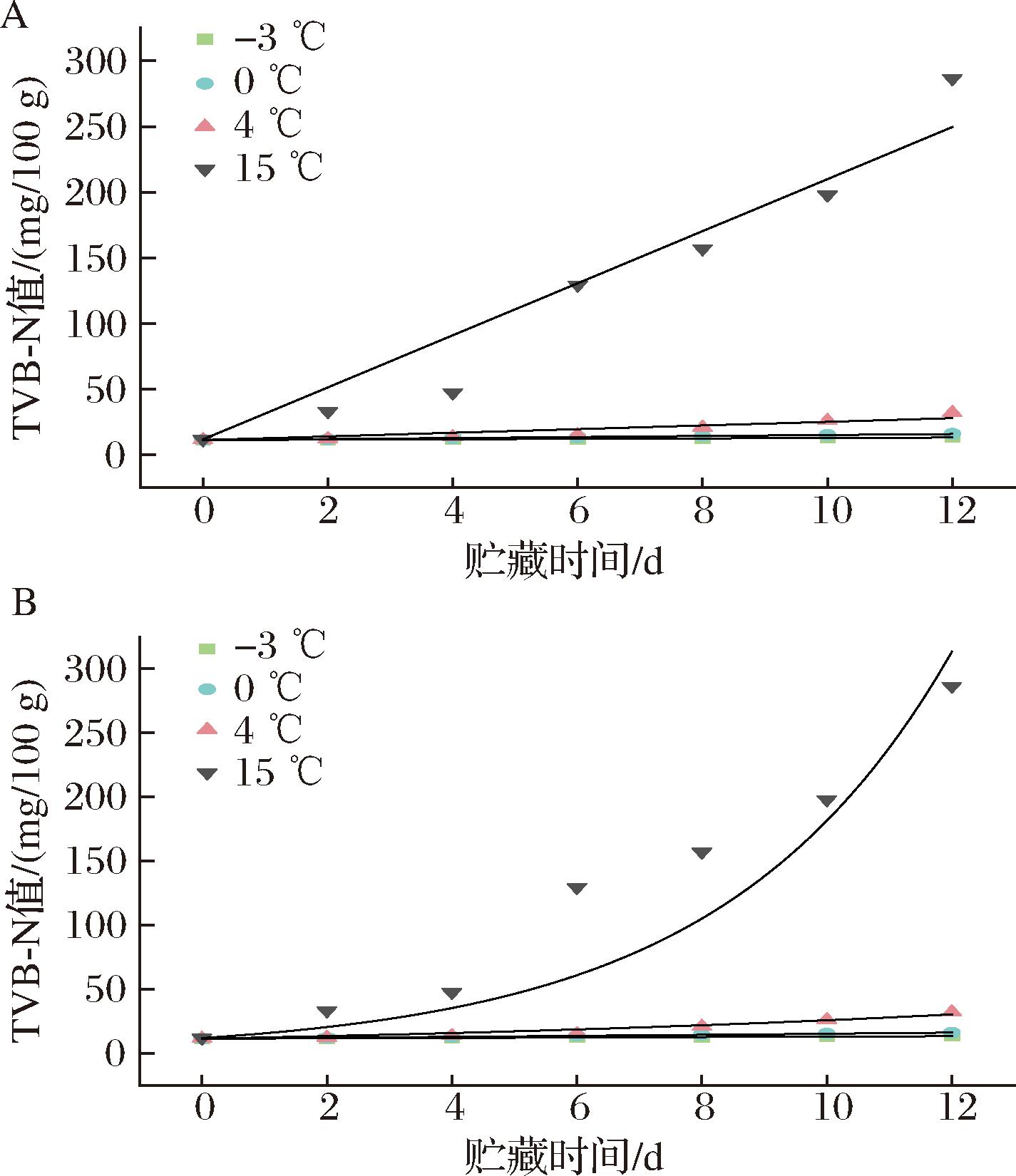 式中:C0,TVB-N初始值,mg/g;C,相应时间下的TVB-N值,mg/g;t,贮藏时间,d;k,速率常数。
