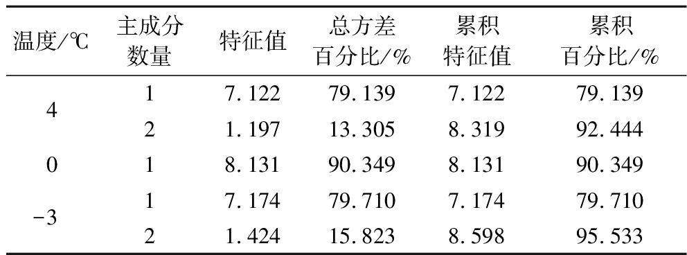 温度/℃主成分数量特征值总方差百分比/%累积特征值累积百分比/%417.12279.1397.12279.13921.19713.3058.31992.444018.13190.3498.13190.349-317.17479.7107.17479.71021.42415.8238.59895.533