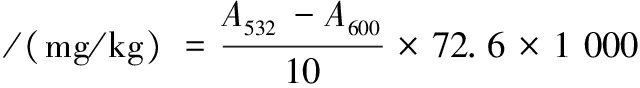 取2 g鸭肉糜于离心管中,加入50 mL 75 g/L三氯乙酸[含0.1%(质量分数)EDTA-2Na],1 500 r/min均质5 min,浸提30 min后过滤。取5 mL滤液于试管中,加入5 mL 0.02 mol/L的硫代巴比妥酸,混匀后90 ℃水浴40 min,冷却至室温后1 600 r/min离心5 min。空白组处理方法为:取5 mL纯水于试管中,加入5 mL 0.02 mol/L的硫代巴比妥酸,其他步骤同上。使用分光光度计在532 nm和600 nm处测量上清液的吸光度,每组样品平行测定3次。计算如公式(3)所示: