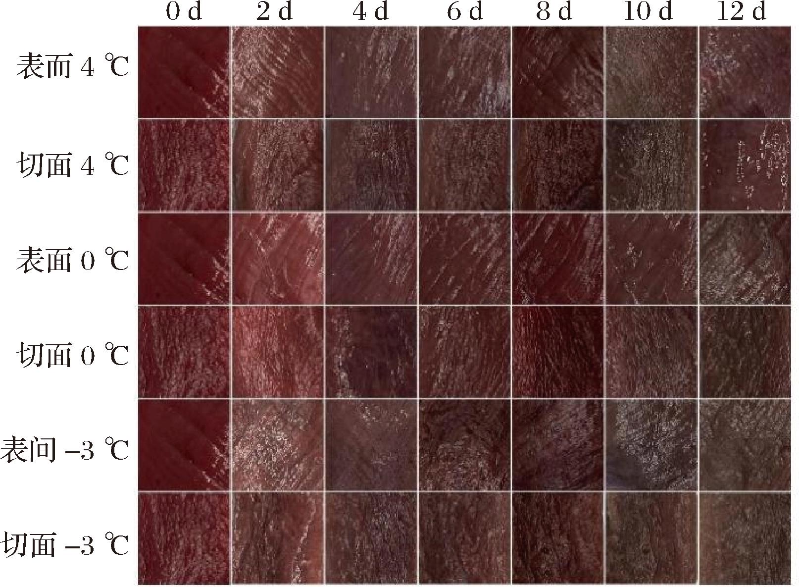 图3 不同贮藏温度下鸭肉表观特性的时间变化规律
