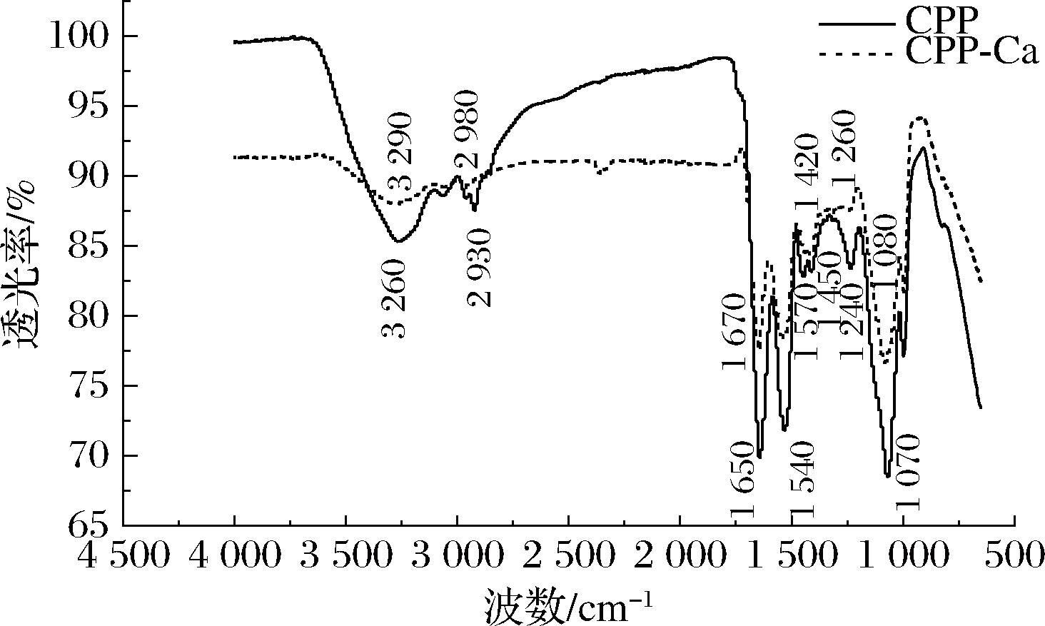 Fig.4 Fourier transform infrared spectra of CPP and CPP-Ca