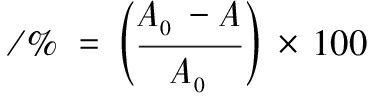 式中:A0,空白对照吸光值;A,样品吸光值。
