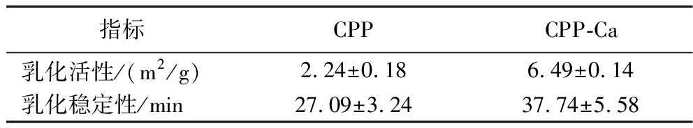 表5 CPP及CPP-Ca乳化性能