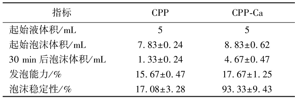 表4 CPP及CPP-Ca发泡性能