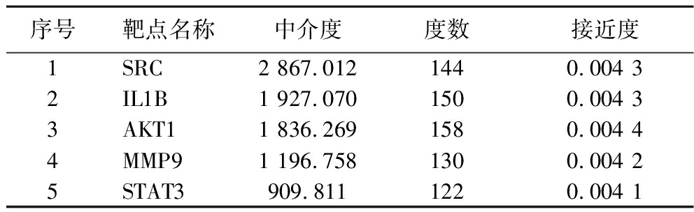 表2 核心靶点拓扑参数
