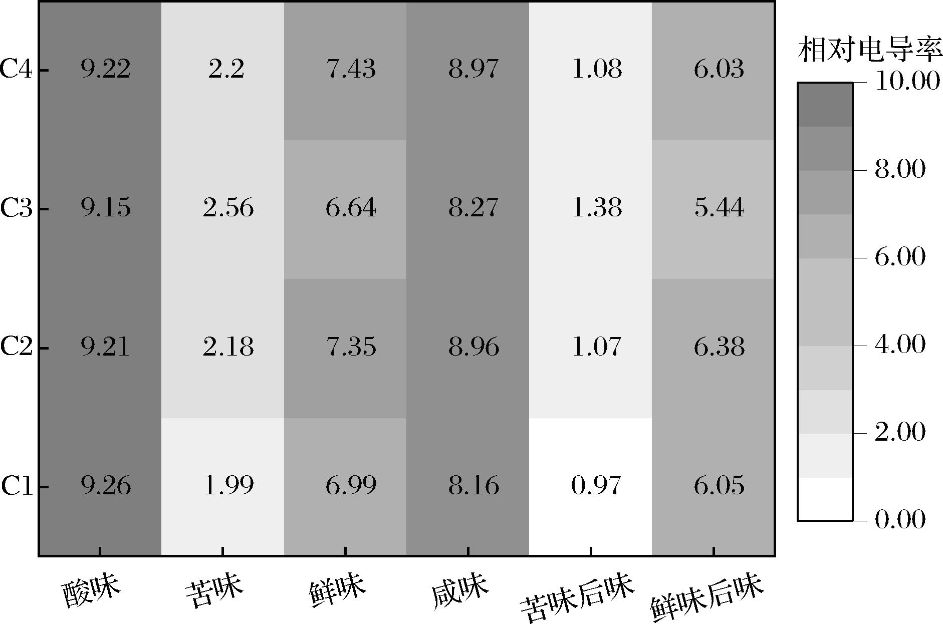 图4 霞多丽葡萄酒的电子舌相对电导率