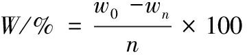 式中:W为馒头的水分损失率,%;w0为新鲜馒头的含水量,%;wn为贮藏n天馒头的含水量,%;n为贮藏时间,d。
