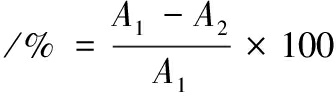 式中:A1,空白对照的吸光度值;A2,样品的吸光度值。